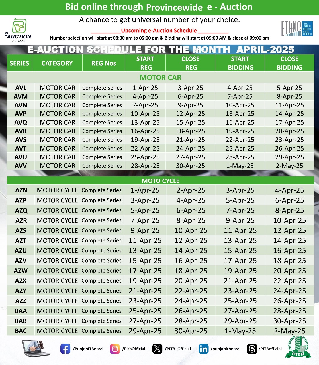 | E-Auction schedule April 25 |