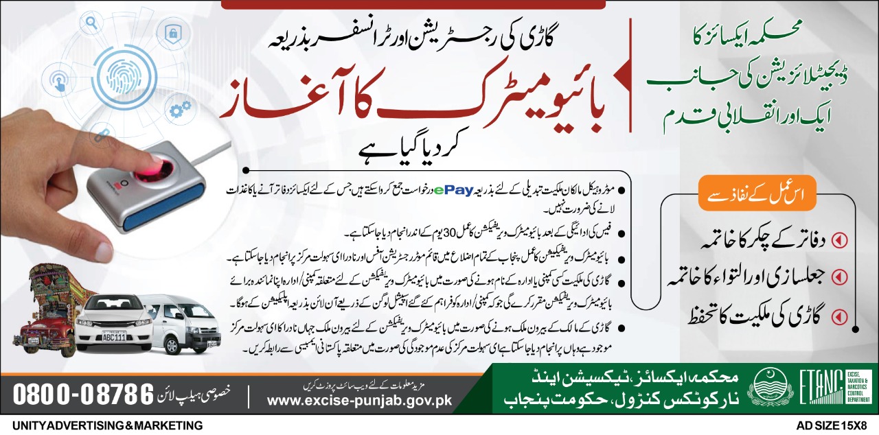 FAQs Process Flow Advertisment Locate NADRA Franchisee e-Sahulat for Biometric TRANSFER OF OWNERSHIP (TO) THROUGH EPAY.pdf32.59 KB بائیو میٹرک سوالات جوابات.pdf2.46 MB Advertisement.jpeg225.03 KB Log in to post comments