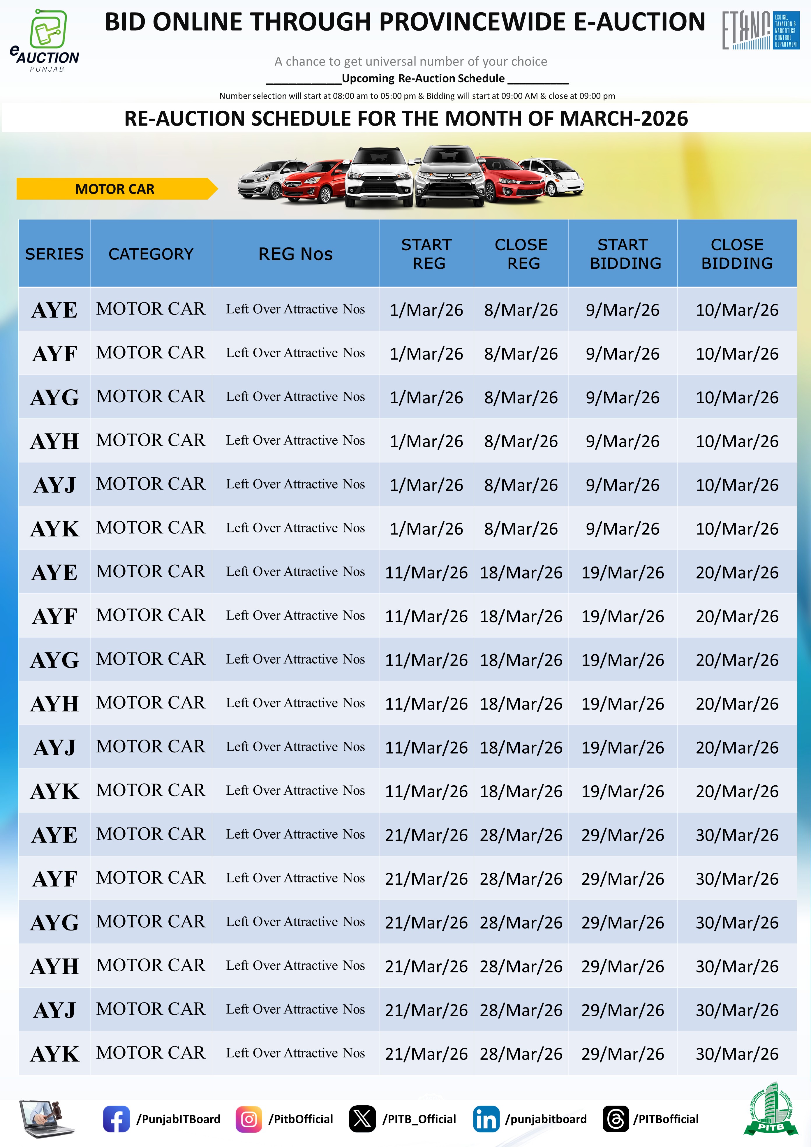 | Re-Auction Schedule Motor Car MARCH 2026 |